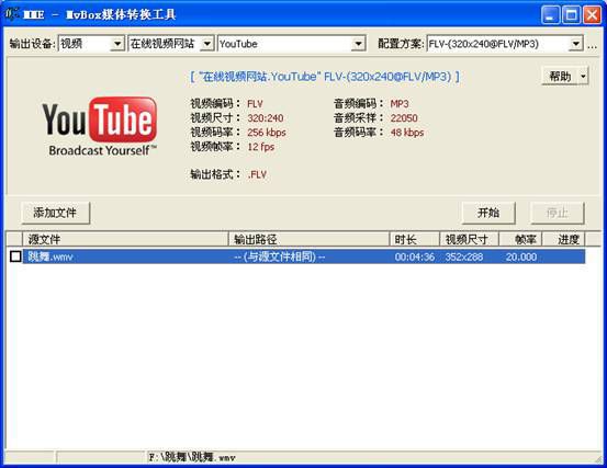 第三:選擇好輸出路徑后,即可點(diǎn)擊“開(kāi)始”來(lái)完成視頻轉(zhuǎn)換。轉(zhuǎn)換好的視頻格式為*.flv 格式。用此格式的視頻,您可以直接去個(gè)人空間上傳了。