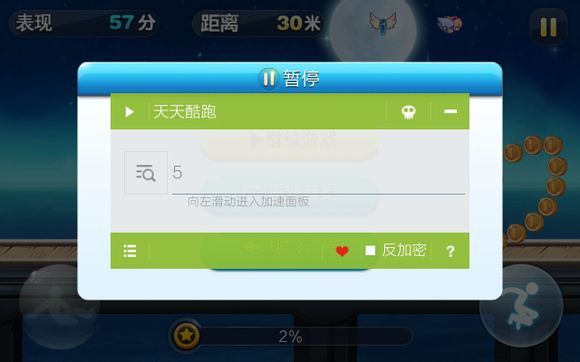 這個(gè)時(shí)候就可以繼續(xù)跑了一直跑到吃到加速 然后加速的時(shí)候按暫停(或者小扳手)