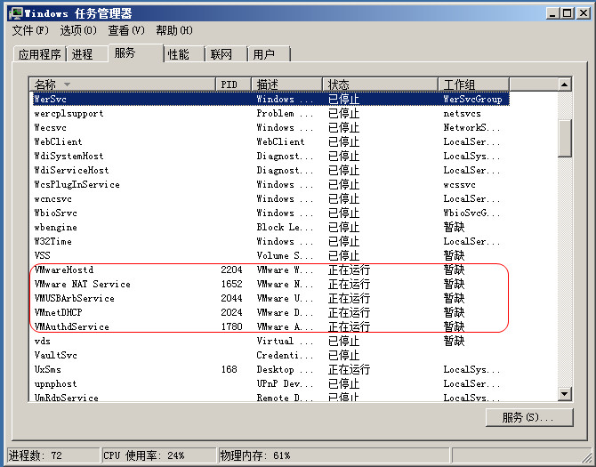 1、停止vmware服務