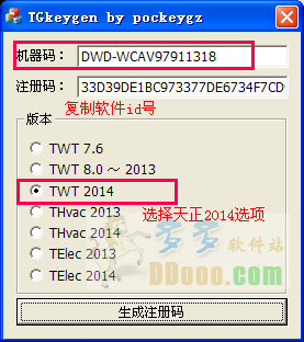 7、選擇“TWT2014”,再點(diǎn)擊“生成注冊(cè)碼”按紐,生成軟件注冊(cè)碼;