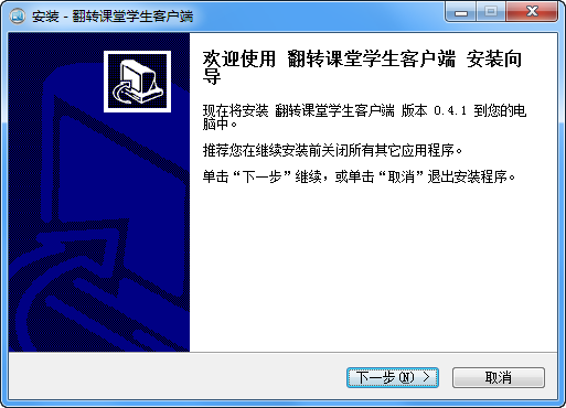 1、下載并安裝翻轉(zhuǎn)課堂學(xué)生客戶端,安裝完成后啟動軟件
