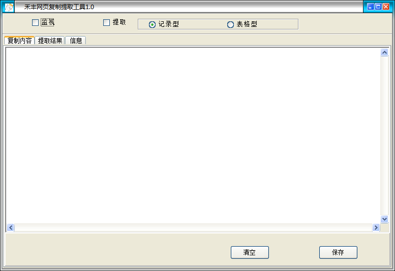 禾豐網(wǎng)頁(yè)復(fù)制提取工具是一款功能非常強(qiáng)大且綠色免費(fèi)的輔助網(wǎng)頁(yè)抓取軟件,能夠連續(xù)保存復(fù)制內(nèi)容,你值得擁有喲!