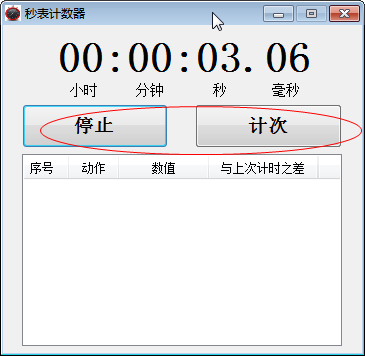 2、每次計時都會自動計算并顯示兩次計時之差。