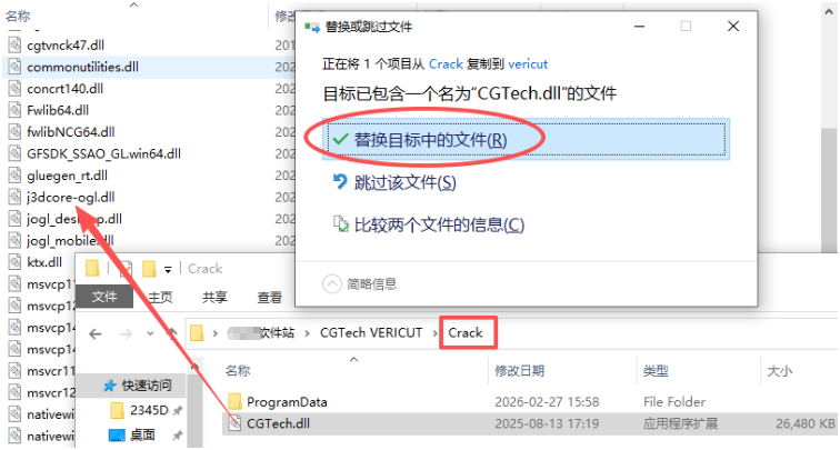 31、將安裝包【Crack】文件夾中的【CGTech.dll】復(fù)制到【vericut】目錄中進(jìn)行替換。