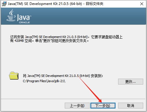 2、進(jìn)入java se開發(fā)工具包21.0.5的安裝向?qū),點擊【下一步】。