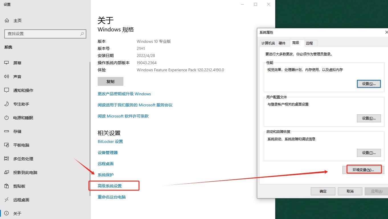9、點擊打開電腦的【高級系統(tǒng)設(shè)置】-【環(huán)境變量】。