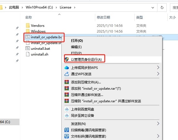 7、打開License文件夾,選擇【install_or_update.bat】鼠標(biāo)右鍵以管理員身份運行。