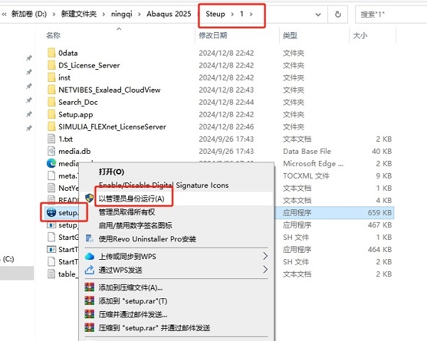 11、打開安裝包Setup-1文件夾,選擇【setup.exe】鼠標(biāo)右鍵以管理員身份運行。