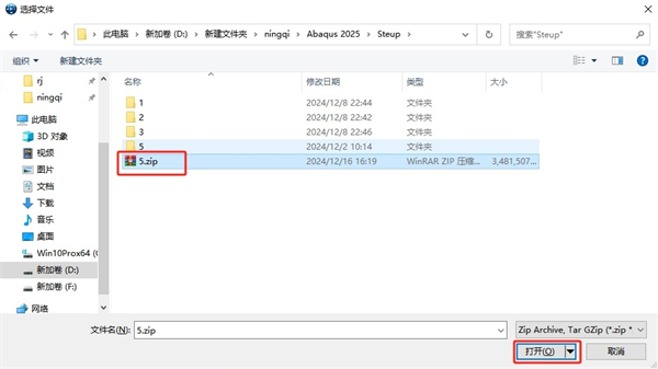 42、彈出對話框,選擇Setup文件夾里面的5.zip壓縮包打開。