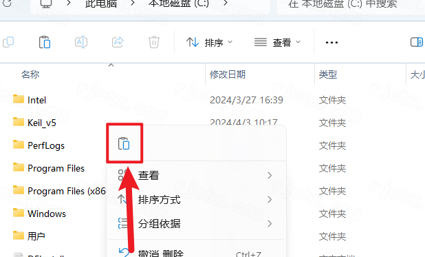 4.打開電腦C盤,鼠標(biāo)右擊空白處選擇【粘貼】