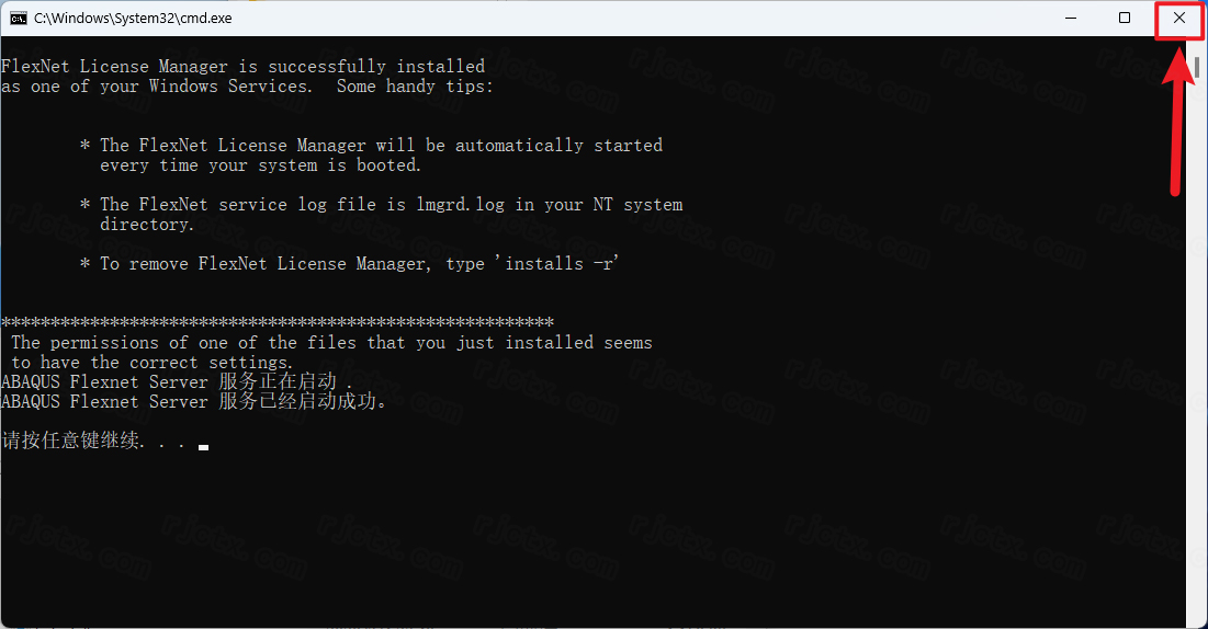 7.界面中提示“服務(wù)已經(jīng)啟動(dòng)成功……”,點(diǎn)擊右上角【❎】退出