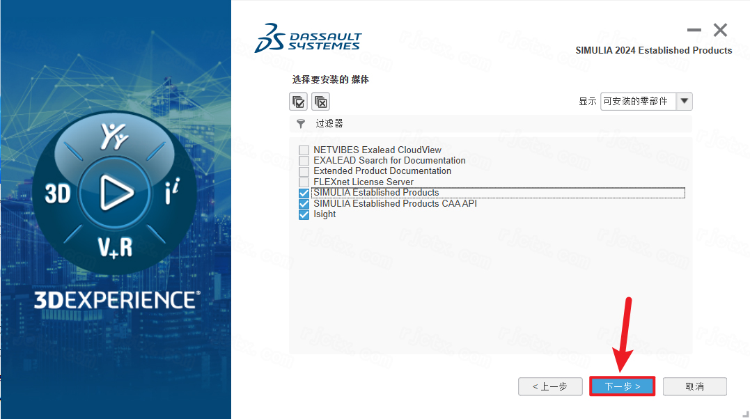 21.勾選需要安裝的零部件,點(diǎn)擊【下一步】