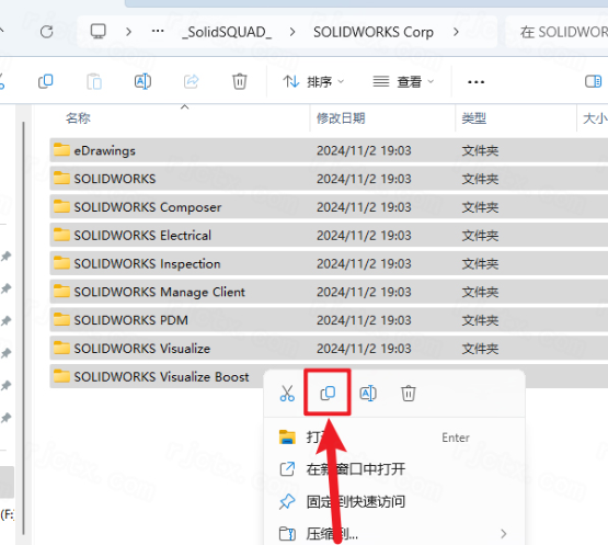6.鼠標(biāo)右擊【SolidWorks_Fiexnet_Server】文件夾,點(diǎn)擊【復(fù)制】