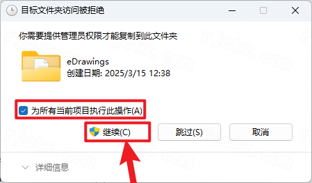 37.如果彈出如圖頁面,勾選【為所有當(dāng)前項(xiàng)目執(zhí)行此操作】,點(diǎn)擊【繼續(xù)】