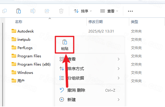 11.打開電腦”C“盤,鼠標右擊空白處選擇【粘貼】