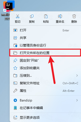 13..鼠標右擊桌面【IntelliJ IDEA 2025.1】選擇【打開文件所在的位置】