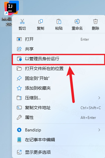 17.鼠標右擊桌面【IntelliJ IDEA 2025.1】圖標,點擊【以管理員身份運行】(注意:如果彈出需要登陸或許可有問題,請關(guān)閉軟件,重新以管理員身份運行)