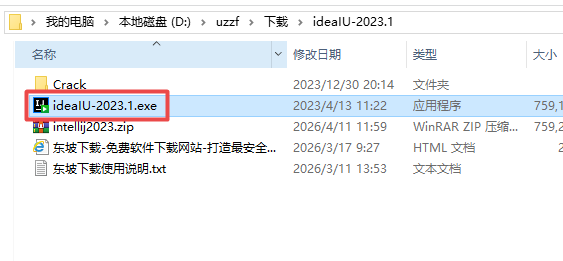 2.打開解壓后的文件夾,雙擊運(yùn)行【IDEAIU-2023.1】安裝程序