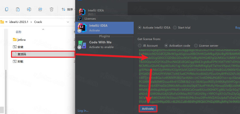 17.打開安裝包解壓后的文件夾中的【Crack】文件夾,鼠標(biāo)按住【激活碼】不動(dòng),將文件拖動(dòng)到軟件內(nèi),點(diǎn)擊【Activate】
