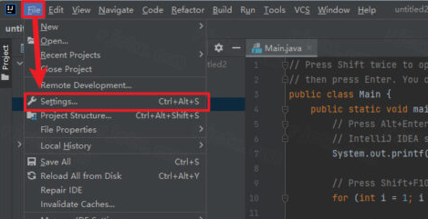 打開軟件,點(diǎn)擊頂部菜單File→Settings(快捷鍵Ctrl+Alt+S)。