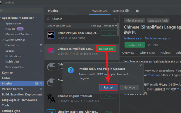 21.點(diǎn)擊【Restart IDE】,點(diǎn)擊【Restart】