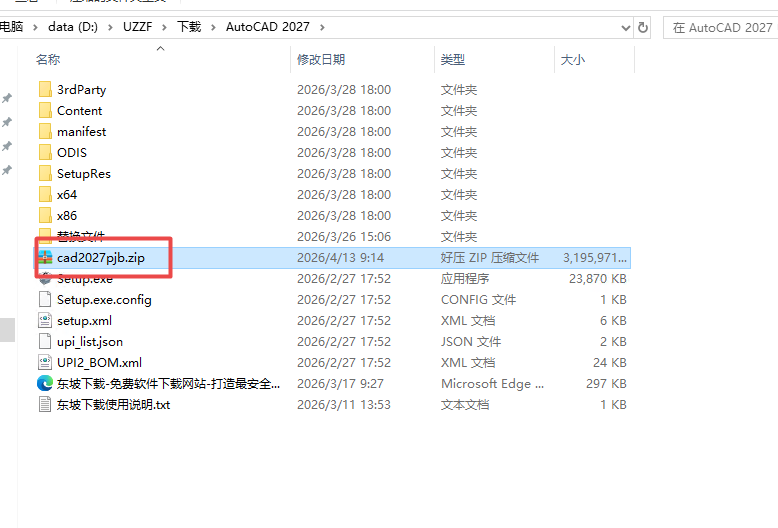 1.下載完成后,鼠標(biāo)右擊【AutoCAD 2027】壓縮包,選擇【解壓至此處】然后打開安裝程序