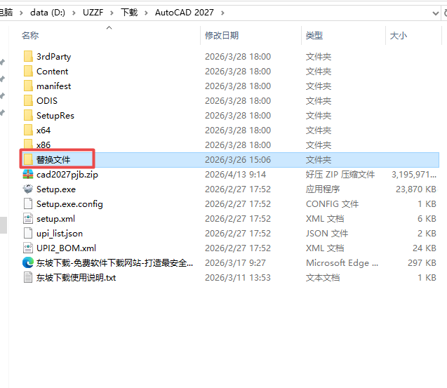 7.打開安裝包解壓后的文件夾,雙擊打開【替換文件】文件夾