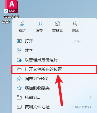 9.鼠標(biāo)右擊桌面【AutoCAD 2027……】圖標(biāo)選擇【打開文件所在的位置】
