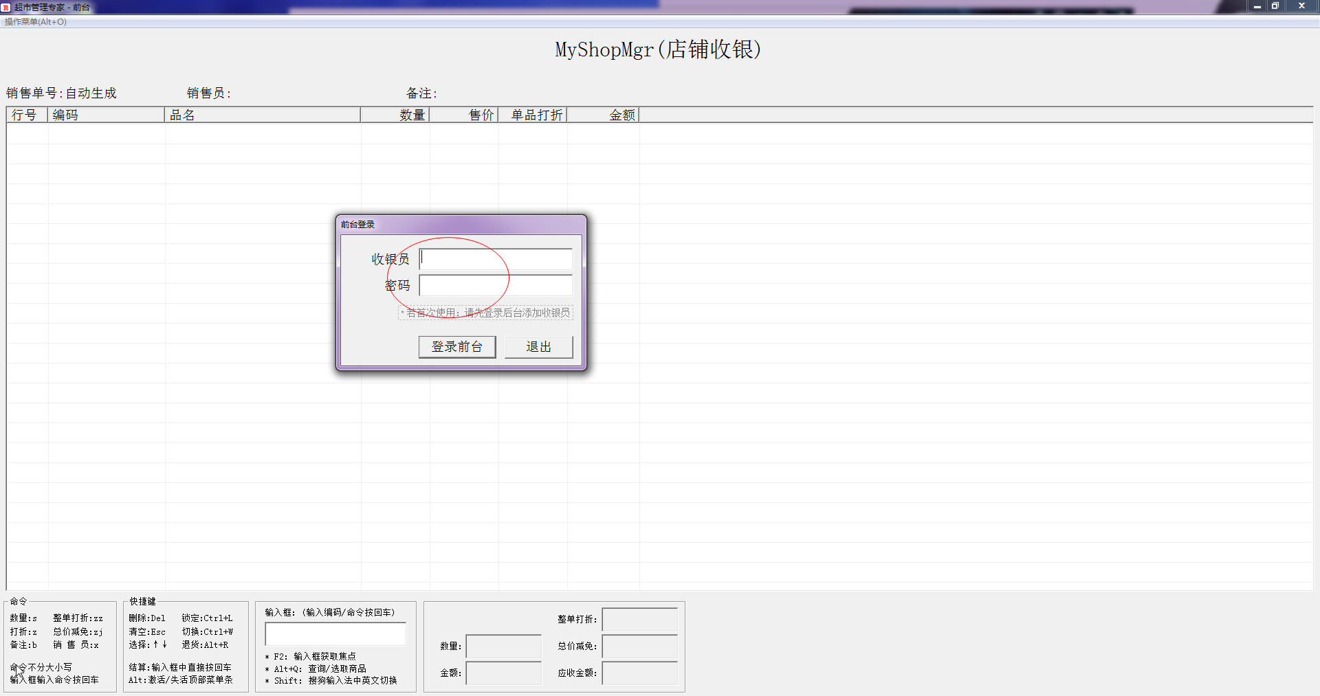 2.命令:修改商品數(shù)量:s;單品打折:z;備注:b;整單打折:zz;總價(jià)減免:zj;輸入銷售員:x。(輸入框中輸入命令按回車,大小寫不敏感)