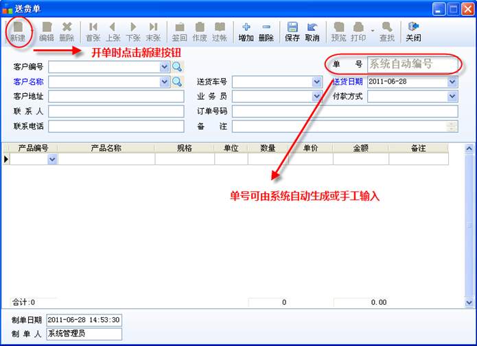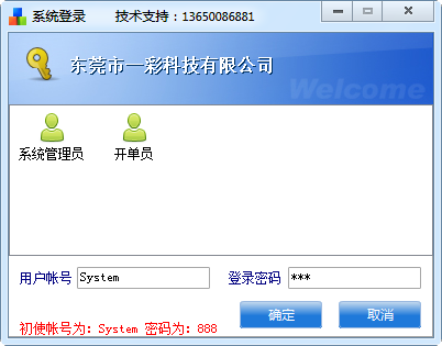 1、安裝完成后運(yùn)行今晨送貨單管理系統(tǒng),初始用的戶名為System 密碼 888