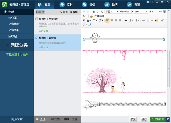 可以離線編輯文章內(nèi)容,也可以通過(guò)云服務(wù)在不同機(jī)器或不同成員間同步;并能便捷的發(fā)送到多個(gè)微信公眾平臺(tái)、新浪微博等社交網(wǎng)絡(luò)帳號(hào)。