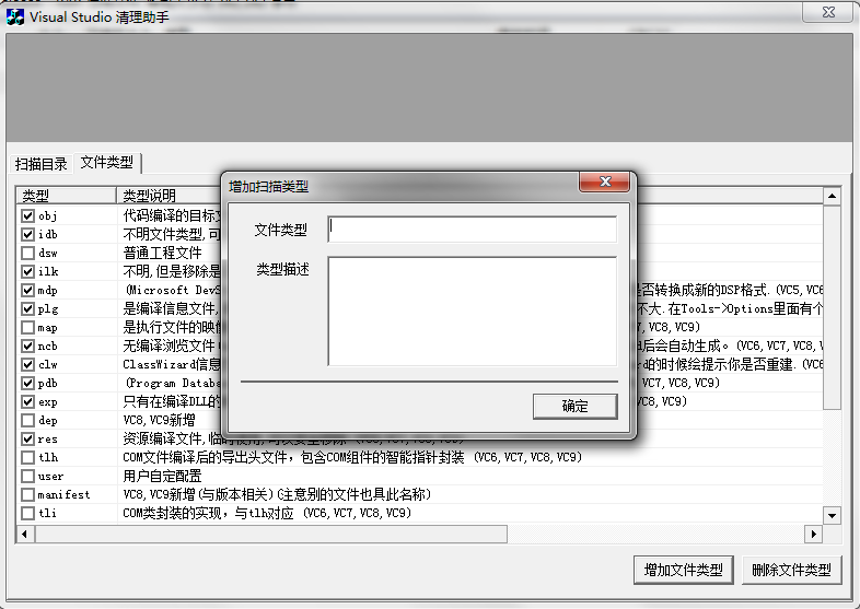 設(shè)置你需要掃描的文件類型(默認(rèn)的文件中有大量Visual Studio的工程文件類型,并設(shè)置為默認(rèn),你也可以加入你需要掃描的文件類型,并設(shè)置掃描)。
