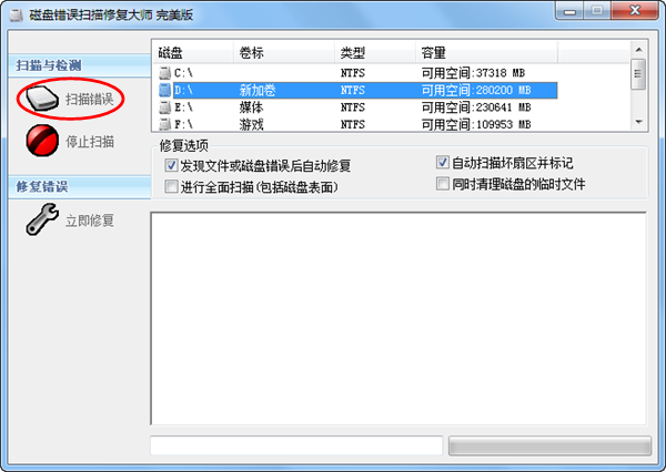 2、選擇磁盤(pán)分區(qū)進(jìn)行掃描