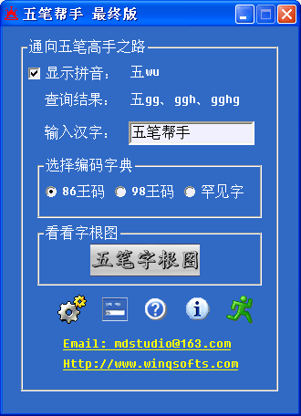 相信現(xiàn)在還有很多網(wǎng)友們都喜歡使用五筆輸入吧。那么今天小編就來(lái)給大家介紹一款五筆幫手最終版軟件。《五筆幫手》是一個(gè)反查漢字五筆打法的軟件,包含86王碼、98王碼、罕見(jiàn)字和漢字拼音,以及86王碼、98王碼和wb18030鍵位圖。好了,廢話不多說(shuō)了,接下來(lái)小編開始為大家介紹五筆幫手最終版。 五筆幫手最終版有什么功能五筆幫手最終版程序功能和特色1、熱鍵呼出?梢韵馫Q一樣自定義熱鍵,后臺(tái)運(yùn)行時(shí)做到一鍵呼出,一鍵隱藏。默認(rèn)熱鍵WIN+Z。 2、鍵位圖。鼠標(biāo)掠過(guò)可以隨時(shí)看看字根表,對(duì)應(yīng)查出的打法思考一下是怎么拆的。鼠標(biāo)離開鍵位圖進(jìn)入五筆幫手的客戶區(qū),鍵位圖關(guān)閉。也可以將鍵位圖永久地放在前臺(tái),開開鍵位圖后,按熱鍵隱藏五筆幫手主窗口即可,鍵位圖也可以按住鼠標(biāo)左鍵任意移動(dòng)位置,單擊鼠標(biāo)右鍵關(guān)閉鍵位圖。 3、任意拖動(dòng)。在客戶區(qū)按住鼠標(biāo)左鍵既可以任意拖動(dòng)了。 4、迷你窗口?梢源蜷_迷你窗口將五筆幫手放到窗口最前面方便查詢。迷你窗口用的編碼字典與主窗口一致! 五筆幫手最終版怎么用五筆幫手最終版使用方法介紹 |