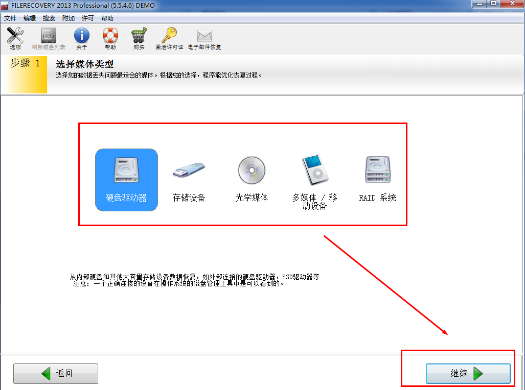 第三步:點(diǎn)擊“繼續(xù)”按鈕。然后選擇媒體類型。
