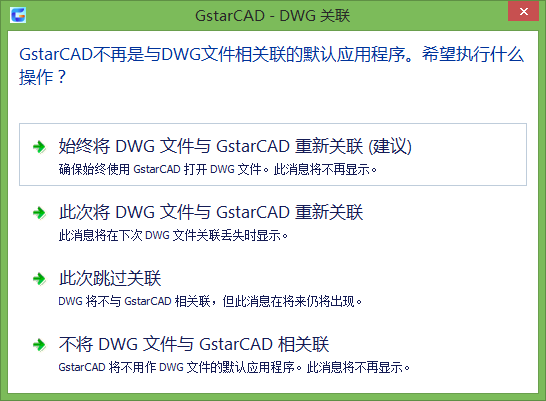 進(jìn)入軟件前會(huì)要求設(shè)置是否和.dwg文件進(jìn)行關(guān)聯(lián),并將浩辰cad設(shè)置為系統(tǒng)默認(rèn)cad軟件。