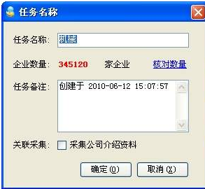 待軟件獲取到慧聰網(wǎng)上最新數(shù)據(jù)后,顯示反饋給用戶,輸入一個任務(wù)名稱,再點(diǎn)“確定”即可生成一個任務(wù);按“確定”后,任務(wù)顯示在軟件中
