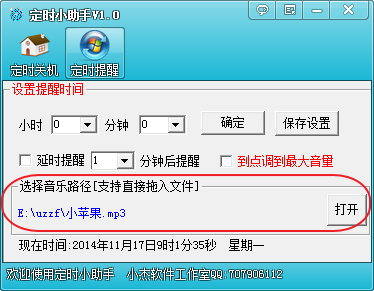 小杰定時小助手(定時關(guān)機助手)是一款綠色免費的電腦定時關(guān)機軟件。軟件功能強大,可以實現(xiàn)定時關(guān)機、重啟這兩種實用的功能。其中定時關(guān)機,支持不彈提示直接關(guān)機,定時提醒,支持自定義提醒用的歌曲鈴聲,并且到點可以把音量調(diào)到最大,是你定時關(guān)機的好幫手。