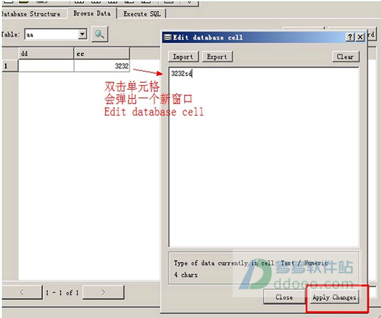 修改表數(shù)據(jù)完畢后,記得點擊“Apply Changes”按鈕