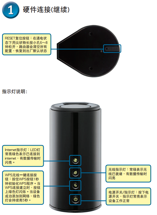 首先,將DIR-645的電源適配器接頭插入DIR-645后面板的電源插孔處,另一端接入電 源插座,再按下DIR-645的電源開關(guān),當(dāng)通電之后會(huì)看到面板的電源指示燈亮。