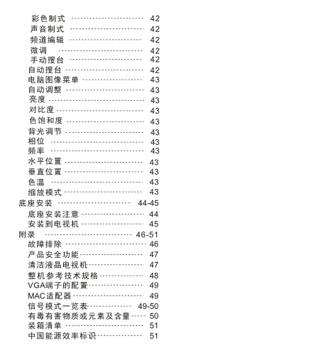 松下TH-42AS650C用戶手冊(cè)目錄(部分)