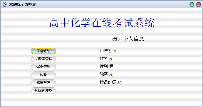 教師的功能主要包括管理試題庫(kù),管理試卷,閱卷以及成績(jī)管理,同時(shí)教師可修改自己的信息