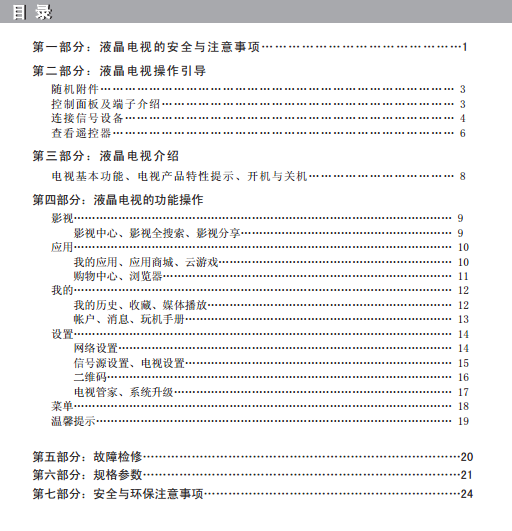 創(chuàng)維32E390E說明書目錄