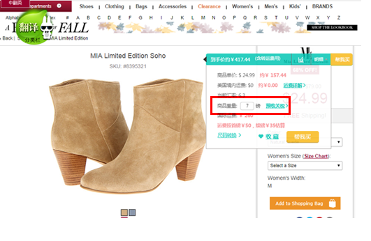 4.1 零米海淘神器有"幫我買"功能,您只需要點(diǎn)開插件的"幫我買",輸入購(gòu)買數(shù)量并選擇顏色等信息后點(diǎn)擊"確定"按鈕,商品會(huì)自動(dòng)加入插件的購(gòu)物車,您在通過(guò)插件付款后就只需要等著商品到手啦。