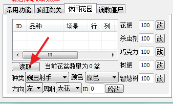4、休閑花園:點擊【讀取】,讀取當前花園花盤,然后進行相關(guān)修改即可