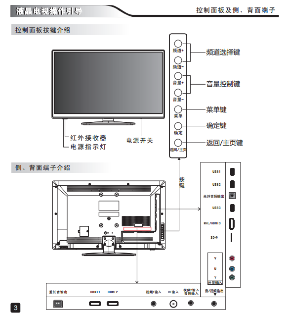 控制面板按鍵及側(cè)、背面端子介紹………………………………………………3