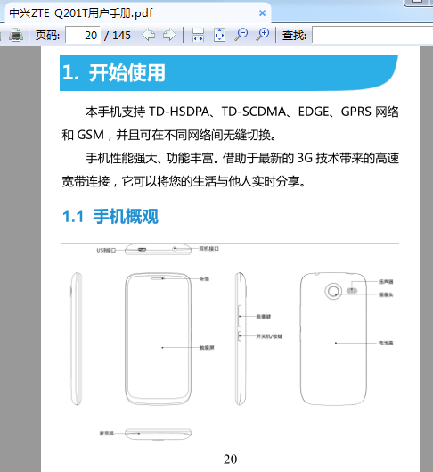 中興ZTE Q201T使用說明書目錄