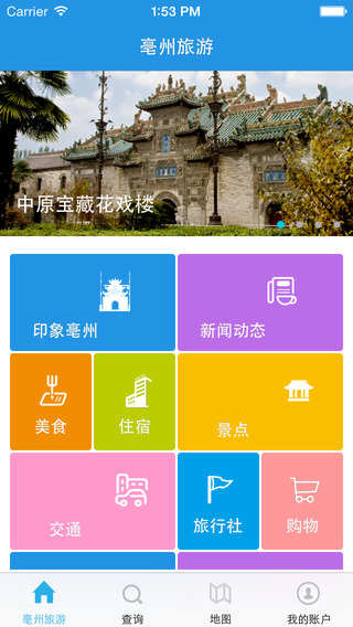 到毫州去旅游的朋友,如果你想在這里玩的更加的開心有趣的話,現(xiàn)在就建議你在自己的手機(jī)上下載下面的這款亳州旅游app,為你全方面的提供吃喝住行攻略!
