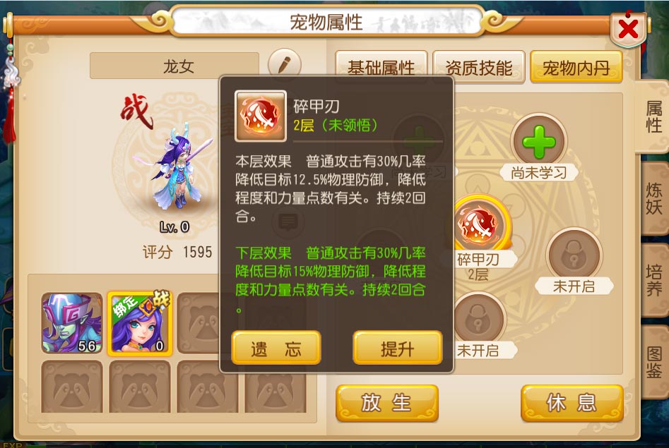 內(nèi)丹學(xué)習(xí)后,可以進(jìn)行升級(jí)、遺忘。