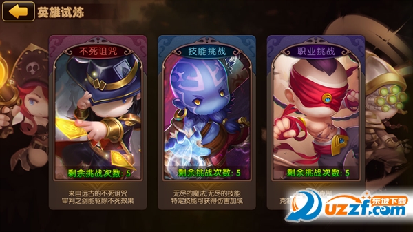 英雄試煉,是對玩家英雄隊(duì)伍的基礎(chǔ)考驗(yàn),產(chǎn)出大量的特定基礎(chǔ)資源。如不死咀咒,需要玩家按照順序擊殺敵人,否則敵人會滿血復(fù)活(好可怕!),產(chǎn)出大量精華(升級的基礎(chǔ)材料);技能挑戰(zhàn),玩家可以盡情釋放技能,產(chǎn)出大量金幣;職業(yè)挑戰(zhàn),不同職業(yè)存在加成的傷害,玩家利用好了,輕松拿3星。